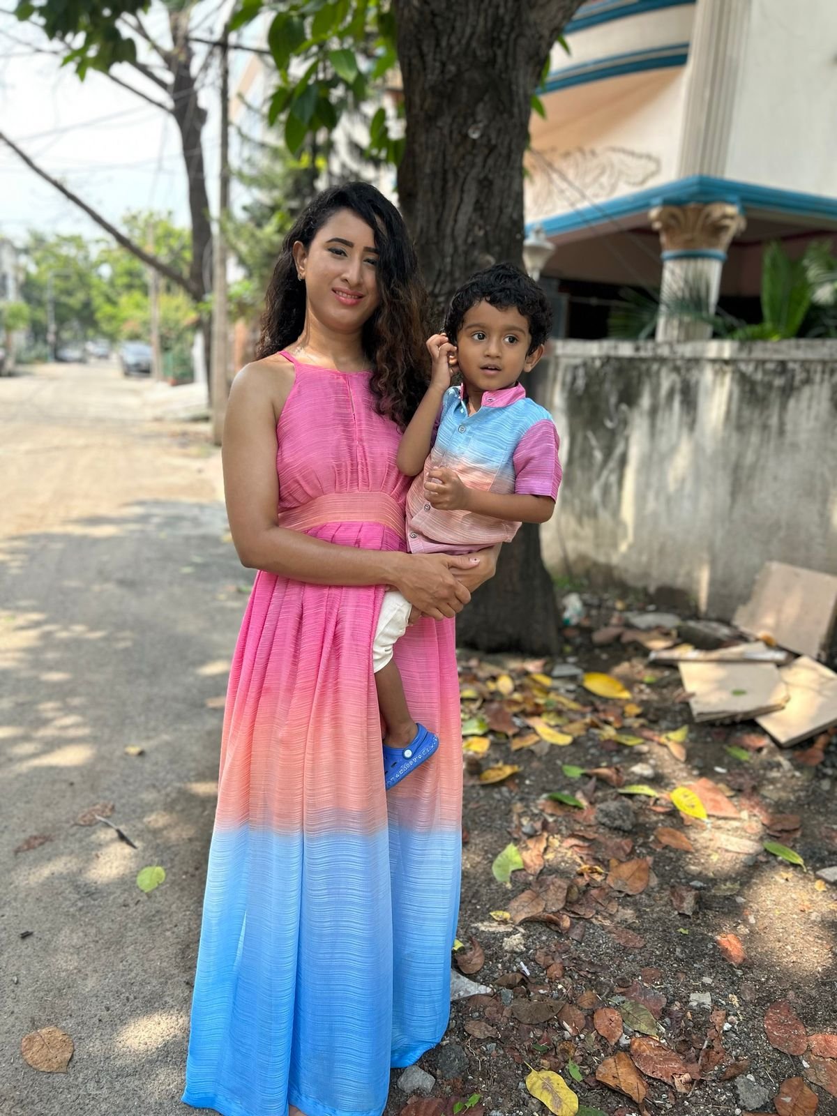 Candy cotton twinning outfits for mom and son