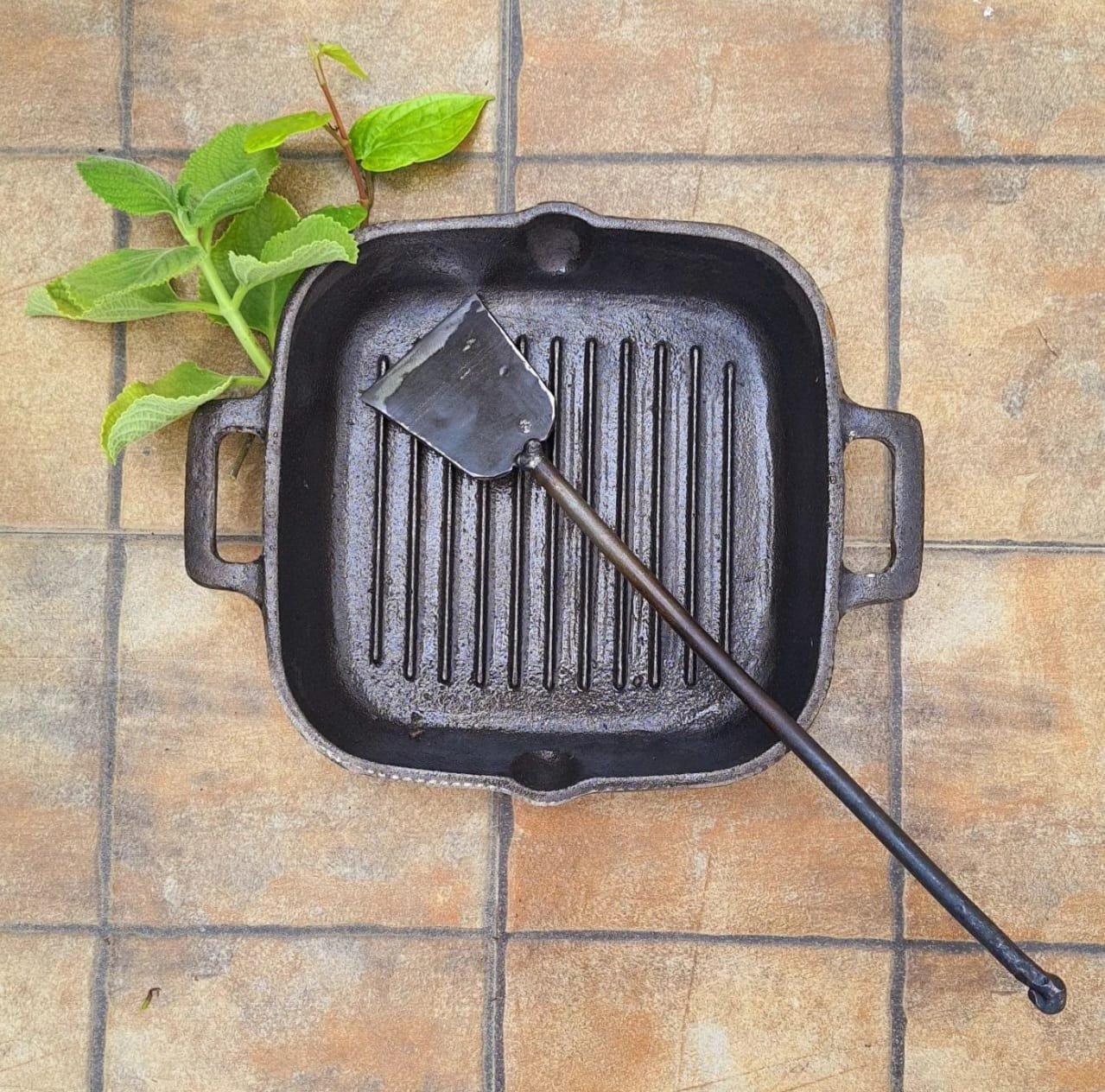 #Desi cast iron grill pan 6inches and cast iron ladel