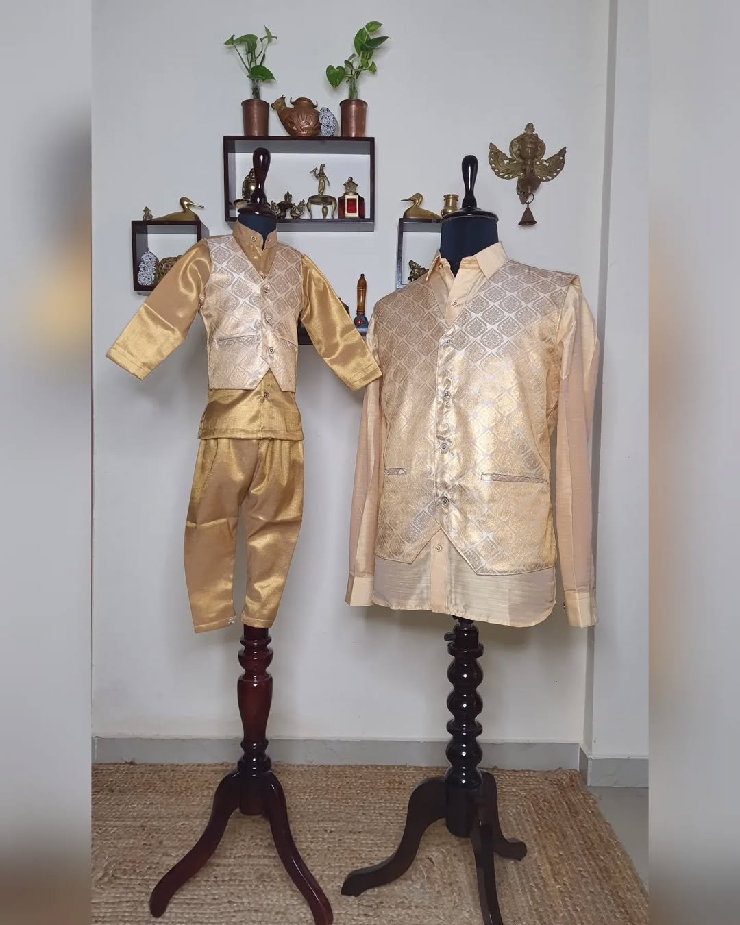 Be the first to review “Gold Silk Waist Coat with Raw Silk Shirt”