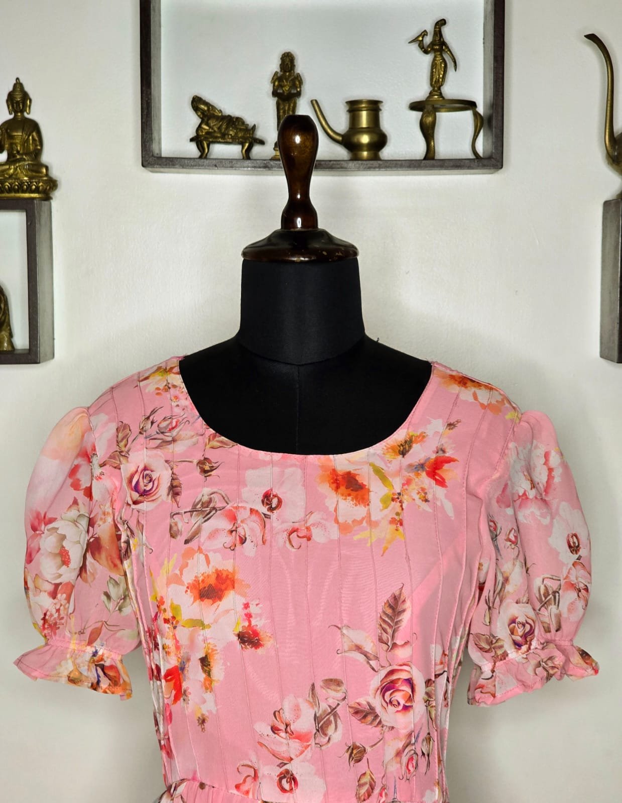 Be the first to review “Peach floral tier with pintuck yoke” Cancel reply