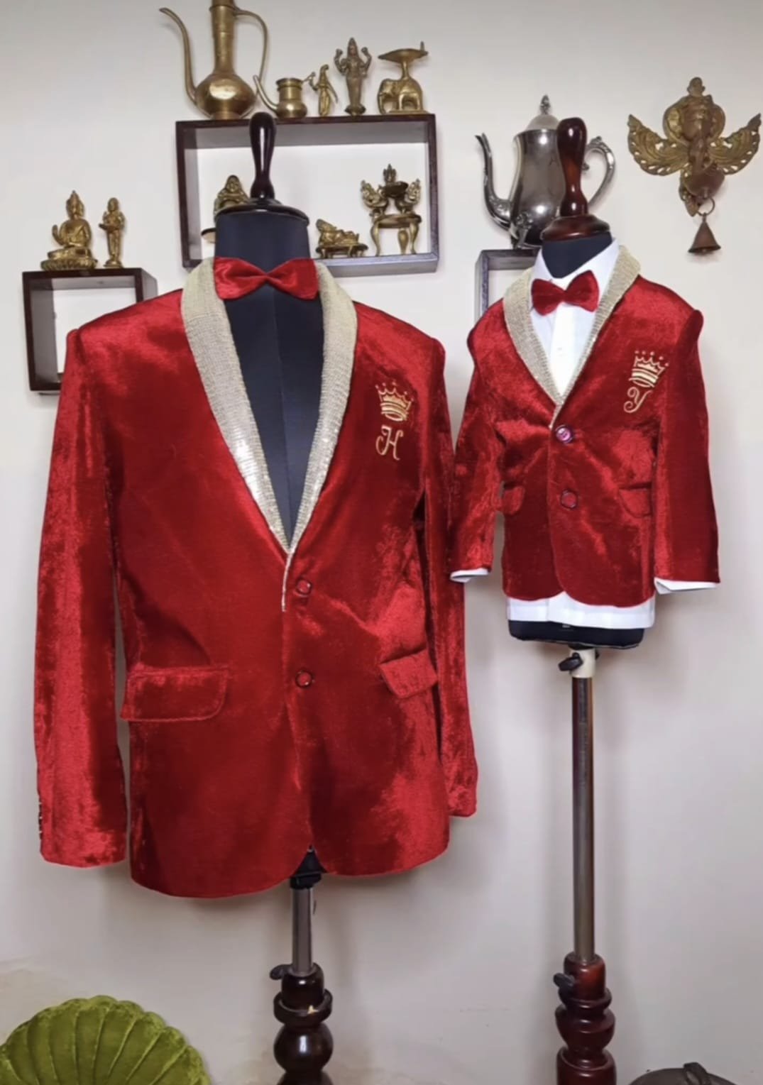 Red velvet blazer with name and logo curated on it
