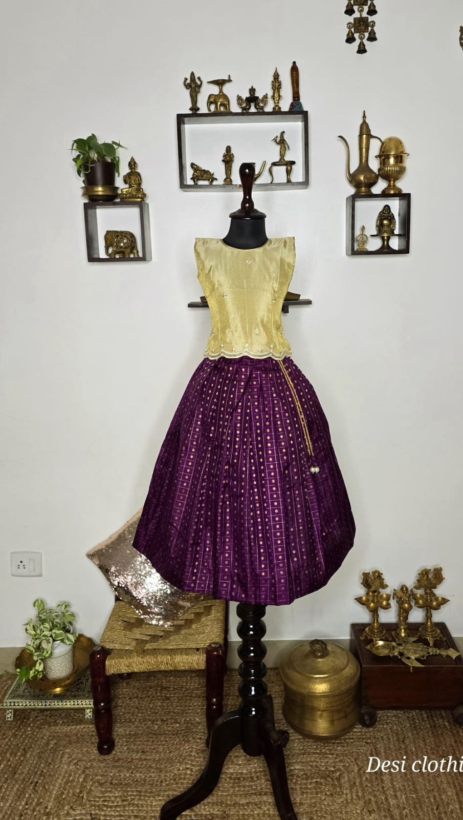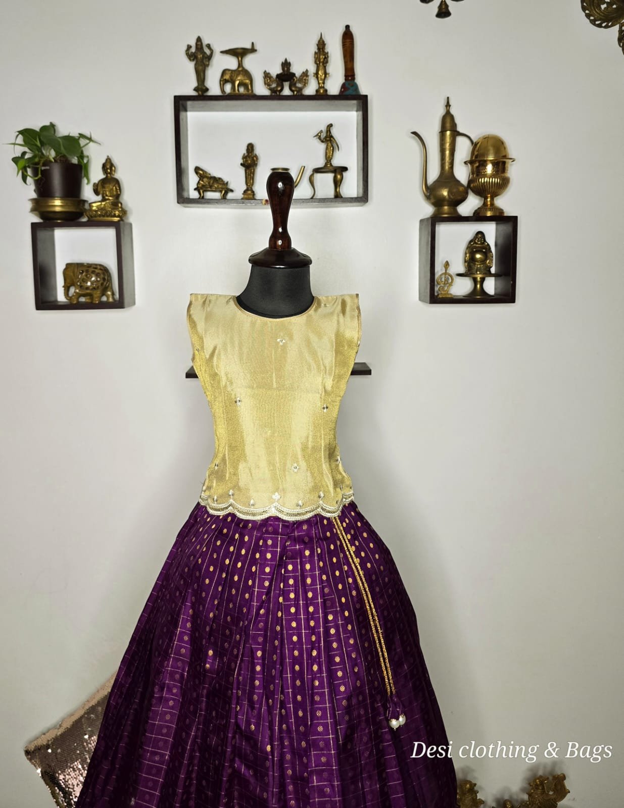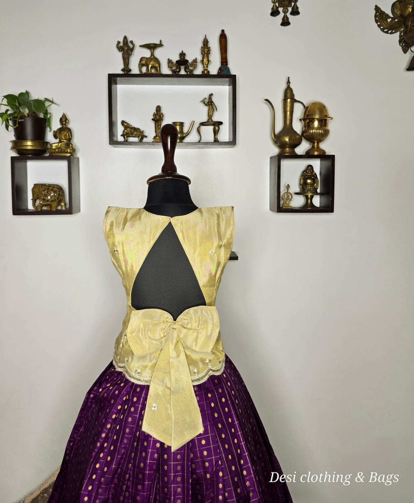 Silk skirt with gold tissue top embellished with a back bow in the top
