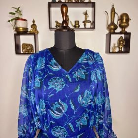 Navy Blue Georgette Drape Gown & Raw Silk Shirt